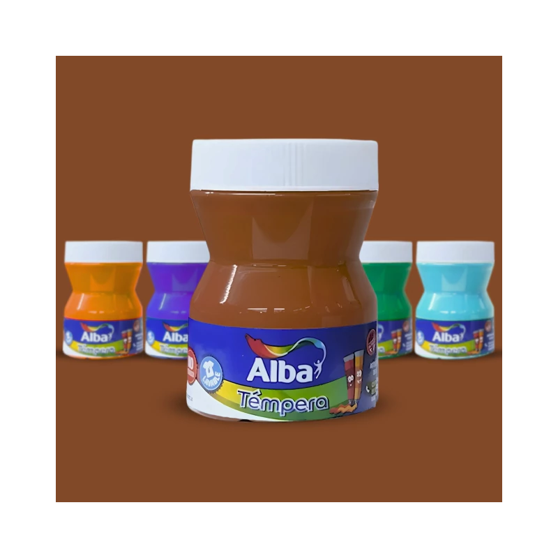 Se fabrican con la misma resina que se emplea en la elaboración de la Témpera extrafina Alba de calidad profesional: la goma arábiga. Este producto de origen vegetal de extendido uso en la industria de la alimentación asegura la no toxicidad del producto. Los pigmentos se seleccionan entre aquellos que permiten colores limpios y vivaces, en una concentración tal que asegura el mayor rendimiento y poder cubritivo. Una vez secas, es posible recuperarlas con agua, manteniendo todas sus propiedades. Tienen una excelente adherencia y un acabado terso, aterciopelado, semimate. Es la témpera recomendada para usar en los grados superiores de la escuela primaria, en la secundaria y en la enseñanza artística que requiera una témpera de calidad cercana a la profesional.
