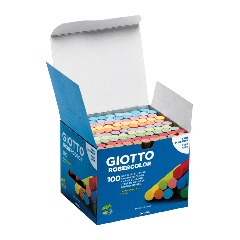 Las tizas Giotto Robercolor  son las más compactas y de colores más intensos del mercado, un concepto diferente en tiza, desprenden mucho menos polvo y duran mucho más por su proceso de fabricación.