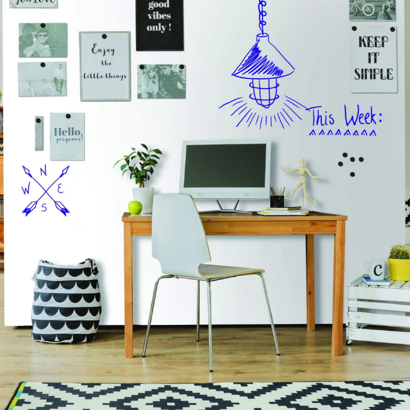 Vinilo Autoadhesivo PVC. Medidas del rollo: 0,45m de ancho x 2m de largo. Puede cortarse con tijera o cutter al tamaño deseado. Es de fácil colocación sobre cualquier superficie no porosa. Ideal para decorar objetos, mobiliario y darle un toque a tus ambientes. Se puede escribir con marcador y volver a borrar las veces que sea necesario.